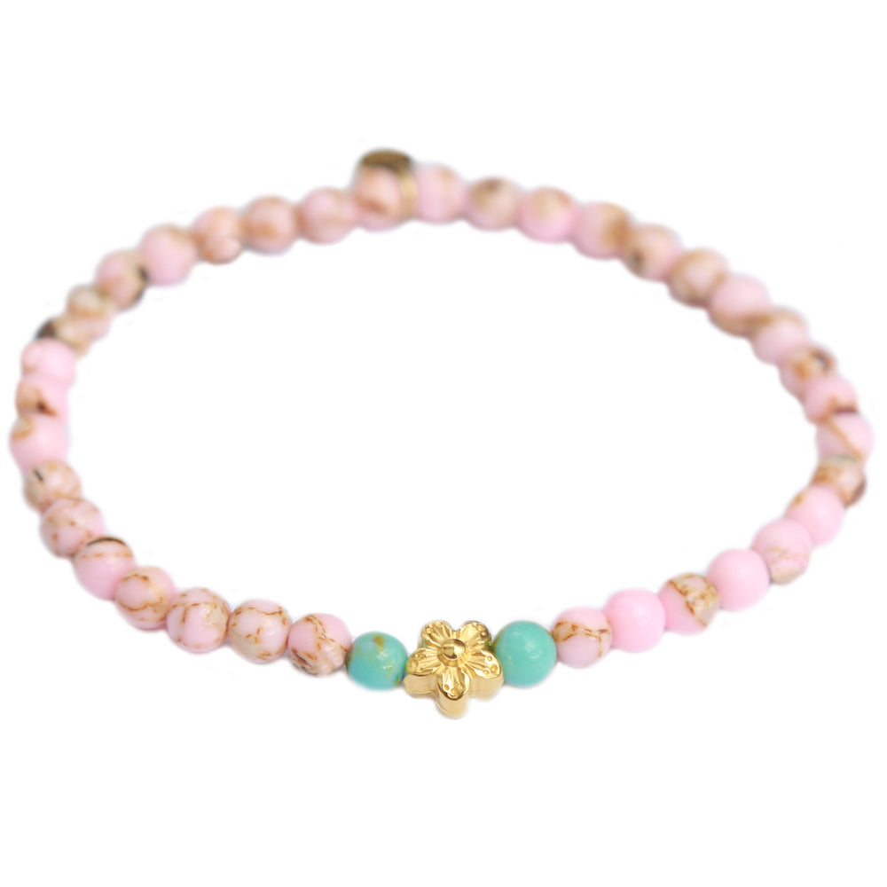 Bracelet pink stone flower gold