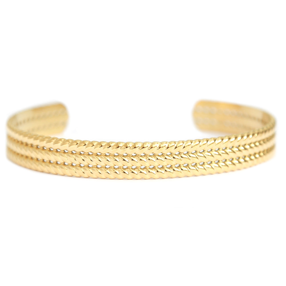 Beautiful stainless steel bangle! Carefully bend the bracelet to the desired size and it will fit everyone.