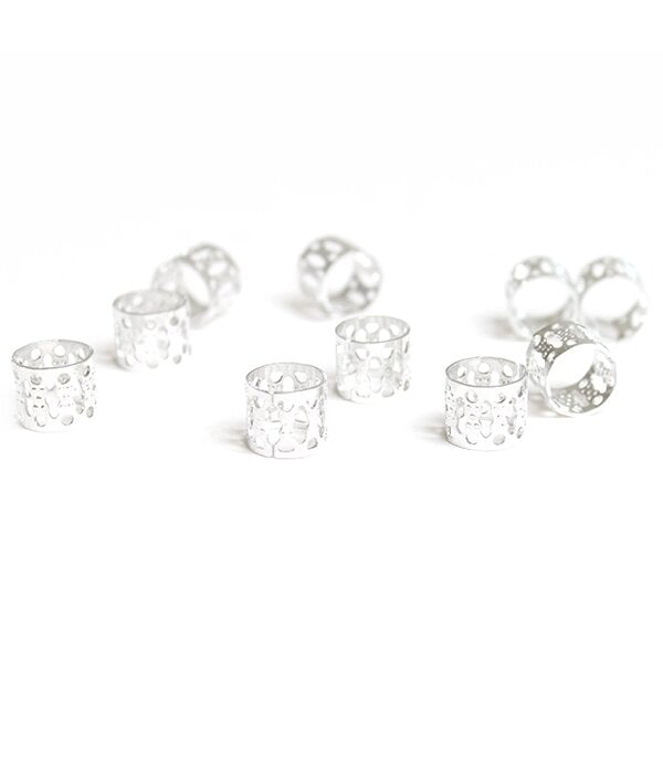 Brighten up your braid with these cute silver hair beads. The beads are easy to open and clip onto the strands of a braid.