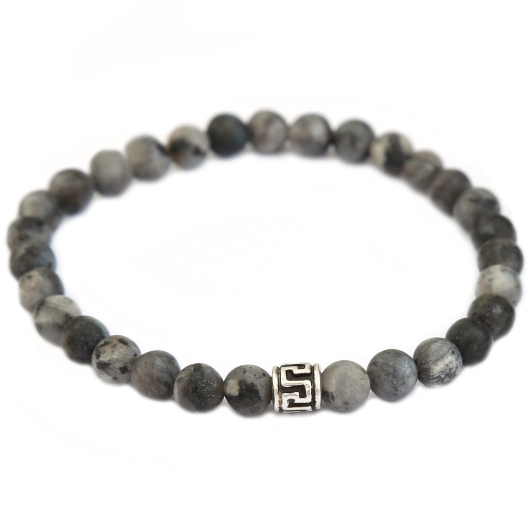 ¡Preciosa pulsera para hombre con cuentas de piedra natural y un dije de plata!