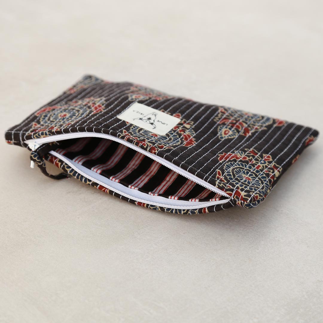 Niedliches Kosmetiktäschchen mit Blockdruck in verschiedenen Farben. Es ist super praktisch als Kosmetiktasche, eignet sich aber auch perfekt zur Aufbewahrung kleinerer Utensilien in einer größeren Tasche.
