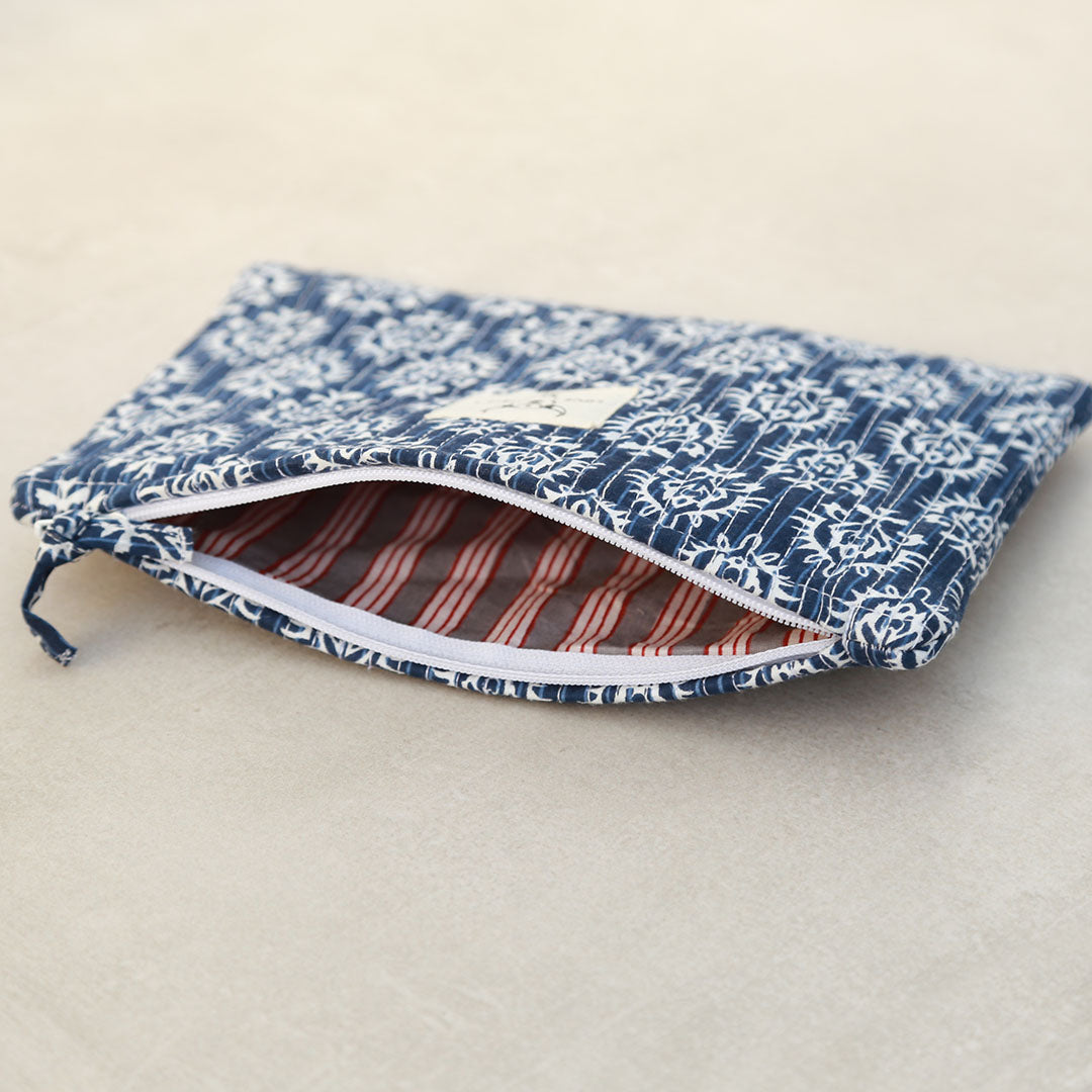 Niedliches Kosmetiktäschchen mit Blockdruck in verschiedenen Farben. Es ist super praktisch als Kosmetiktasche, eignet sich aber auch perfekt zur Aufbewahrung kleinerer Utensilien in einer größeren Tasche.