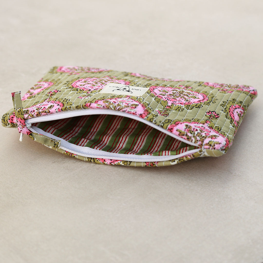 Niedliches Kosmetiktäschchen mit Blockdruck in verschiedenen Farben. Es ist super praktisch als Kosmetiktasche, eignet sich aber auch perfekt zur Aufbewahrung kleinerer Utensilien in einer größeren Tasche.