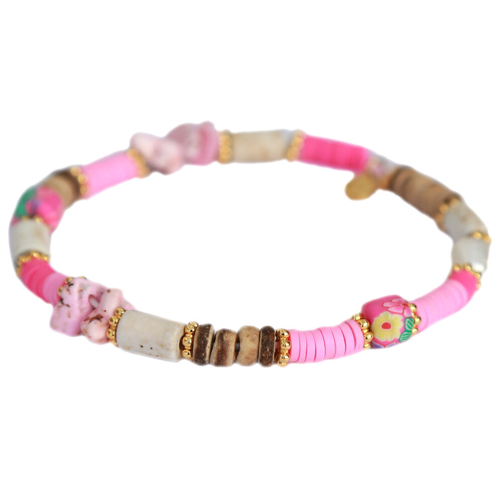 Chique armband van verschillende kraaltjes. Het armbandje is van elastiek en daardoor geschikt voor iedere pols.