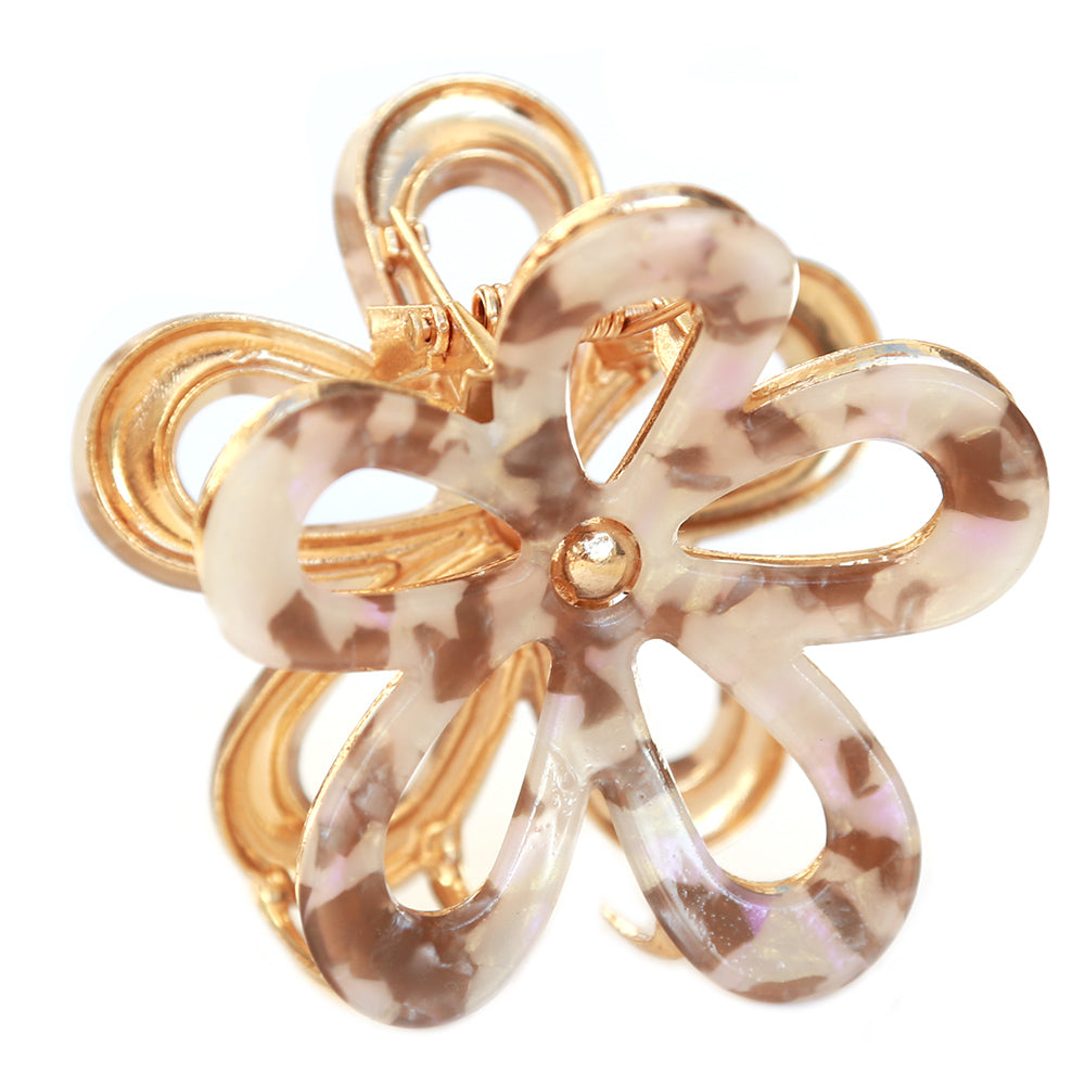Mooie beige met taupe haarklem in de vorm van een bloem.