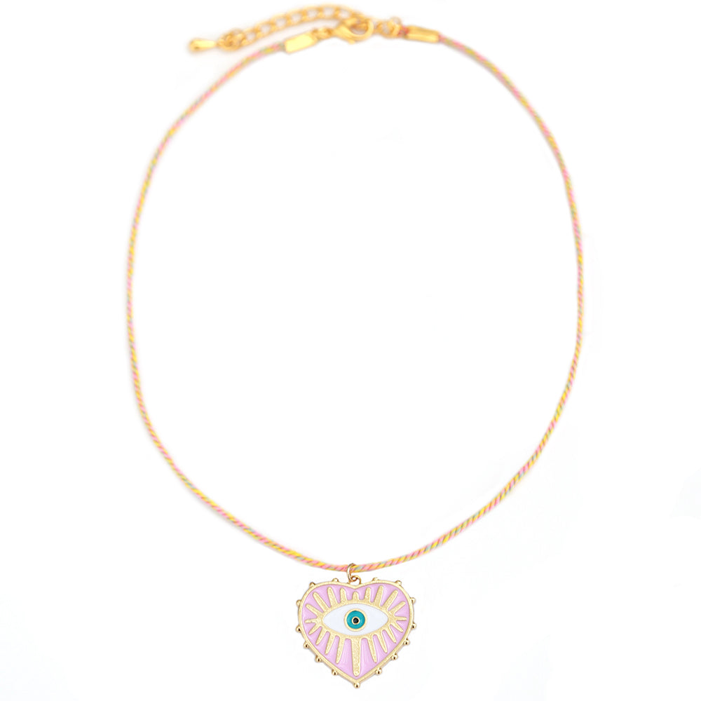 Leuke touwtjes ketting in het lichtroze met een hartjes bedel met een boze oog!