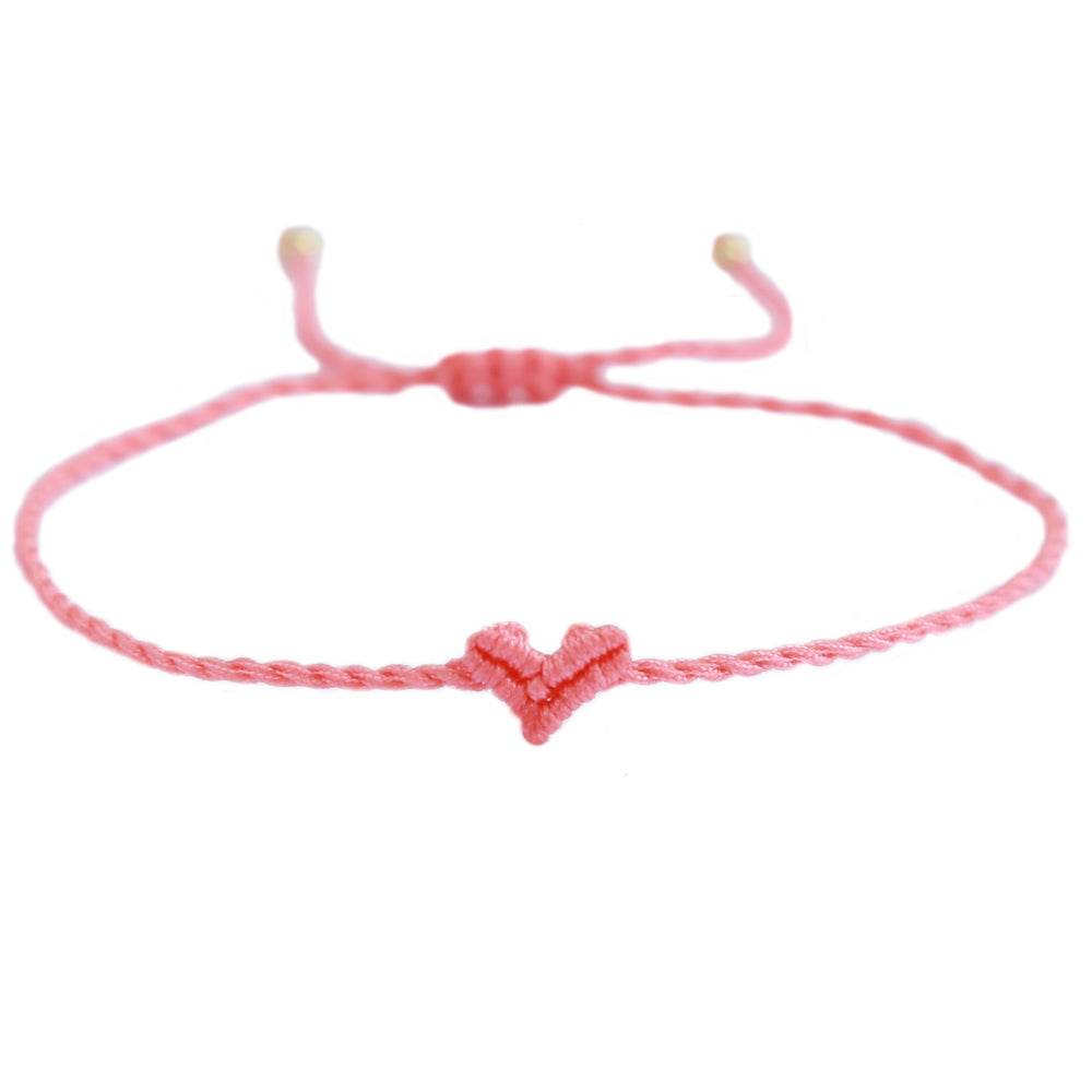 Fijn koraalkleurig armbandje met een klein hartje! Het armbandje is makkelijk op maat te schuiven.