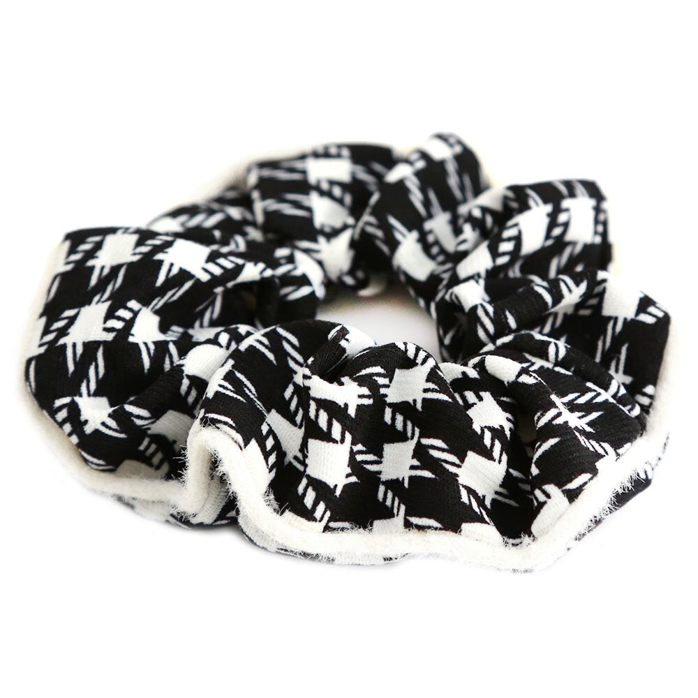 Mooie zwarte scrunchie met een witte pied de poule print.