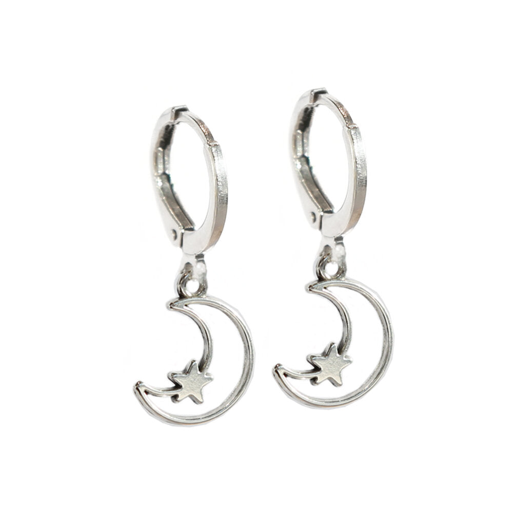 Mooie silver plated ring oorbelletjes met een maan bedel met een sterretje erin.