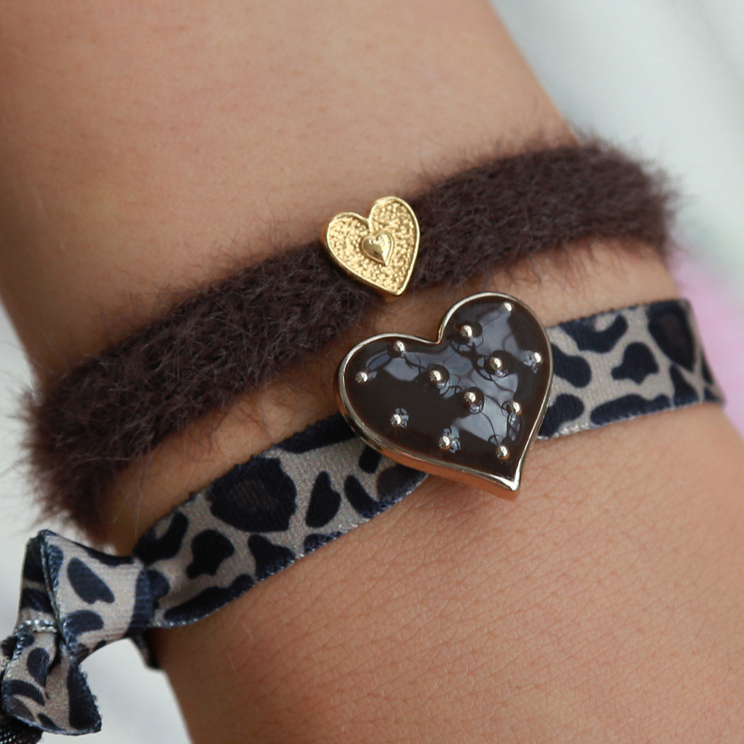 Leuk luipaard armbandje met een hartjes bedel in een bruine kleur met studs.