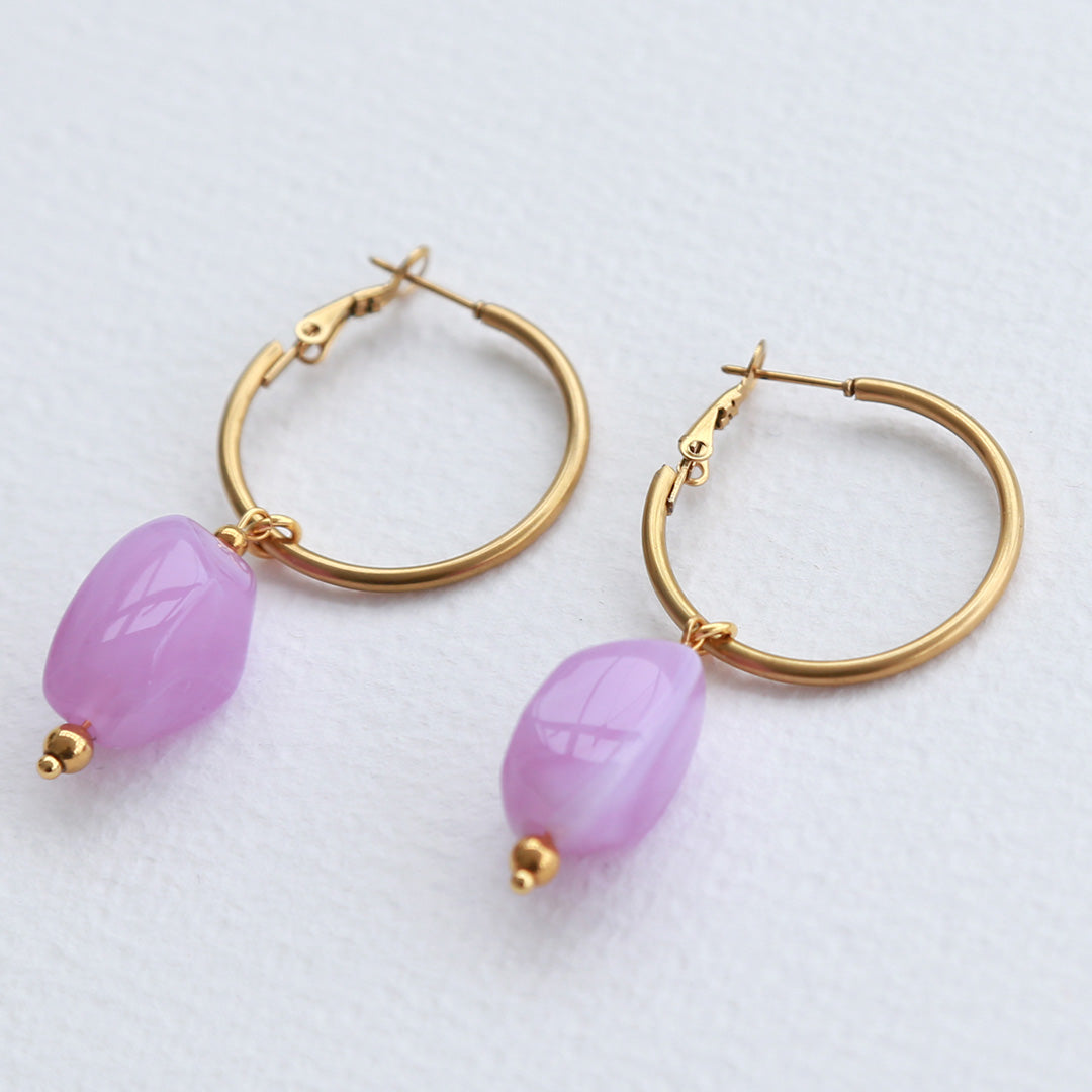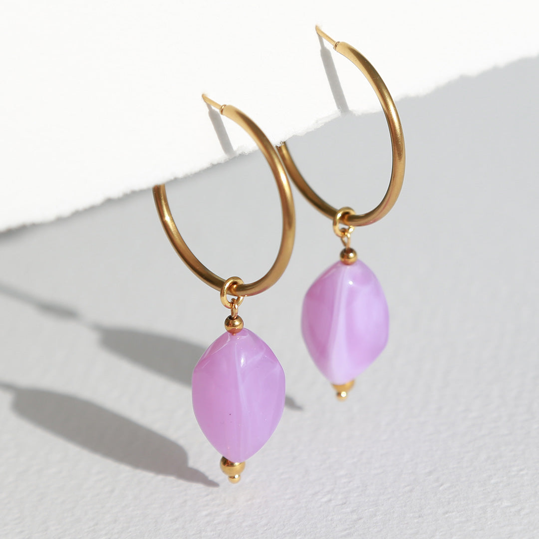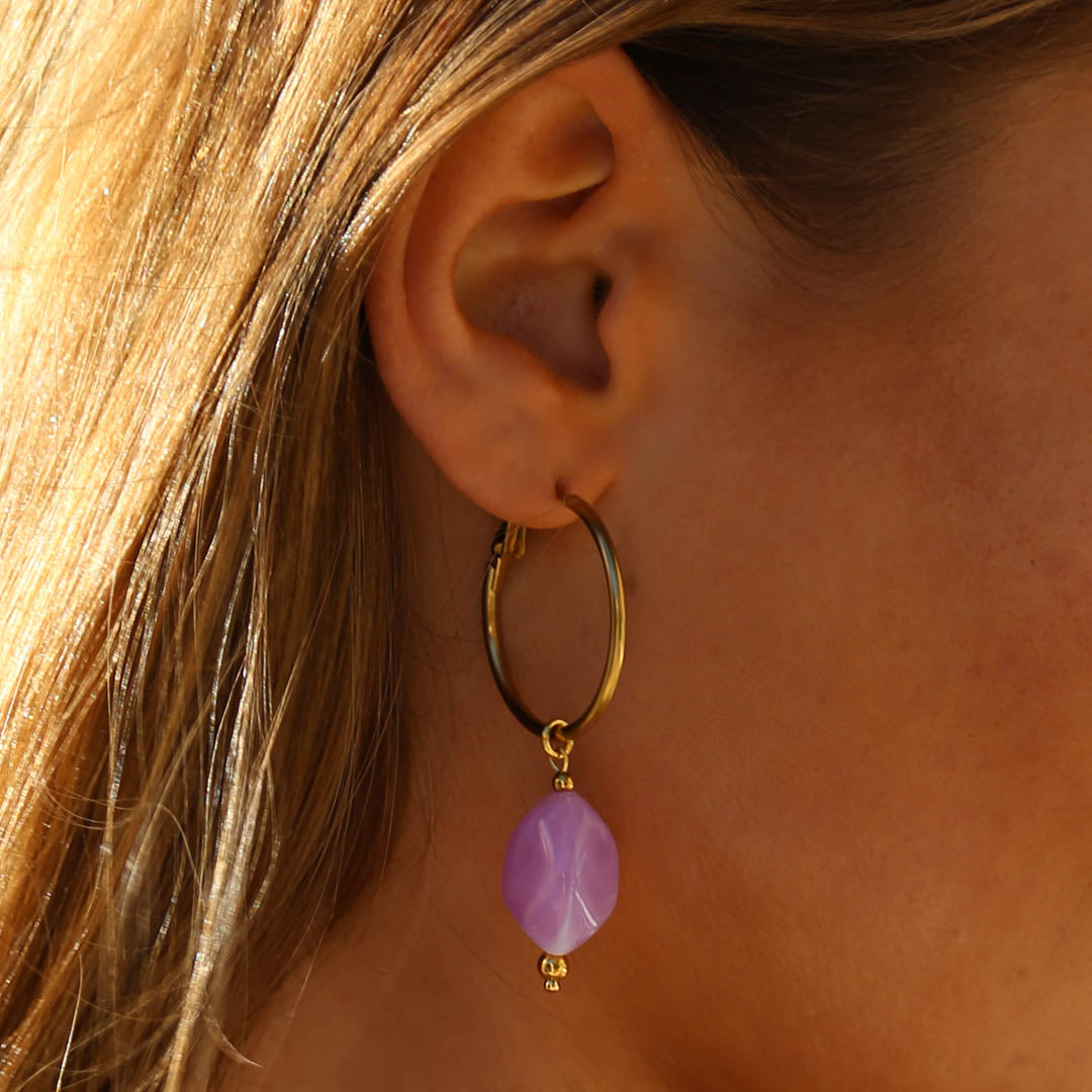 Diese wunderschönen Ohrringe runden jedes Outfit perfekt ab! Tragen Sie sie einzeln für einen dezenten Look oder kombinieren Sie sie mit mehreren Ohrringen für einen trendigen Ohrring-Look. Sie passen hervorragend zu unserer goldenen Halskette „Rocks Lilac“!
